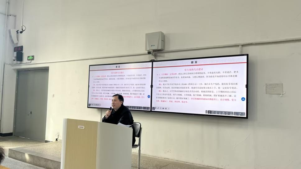 赵光明以《走进重型装备制造:从大国重器看中国制造的硬核实力》为主题展开分享。他结合自身实践经验,从我国重型装备制造的发展历程切入,系统梳理了重型装备在能源、基建、国防等关键领域的应用价值。从晋能控股集团自主研发的大型煤矿装备,到国内领先的盾构机核心技术突破,诠释了“大国重器”背后的技术密码,让在场师生深刻感受到我国制造业从跟跑、并跑到领跑的跨越式发展。